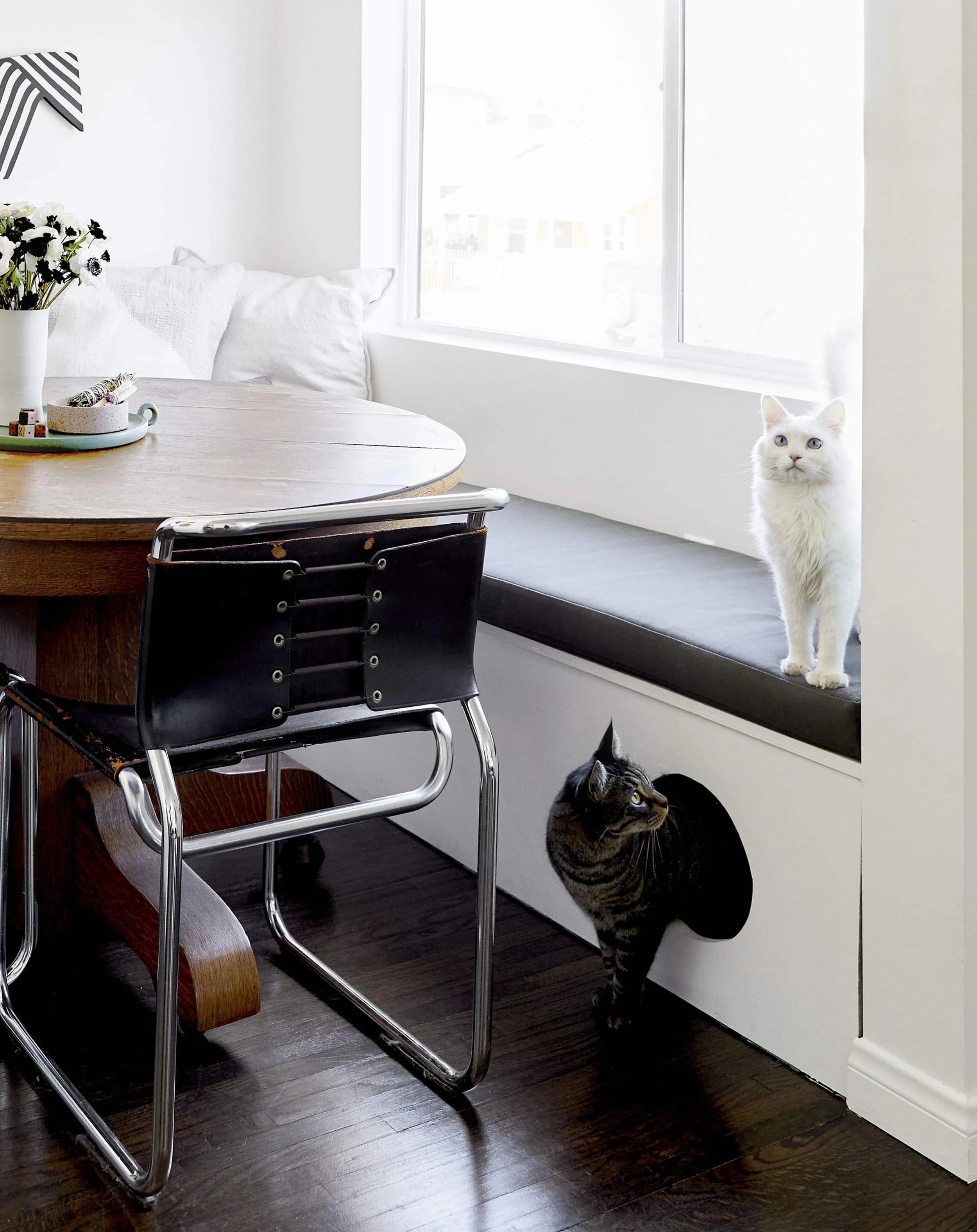 If you’re having renovation work done in your living room, family room, or dining room and have room for a banquette, this can be a great option for additional seating when you’re having a party but can also double as a great spot for your pet to sit and look out a window. We’ve done this many times for our clients, and their dogs and cats love these new cozy places to sleep.